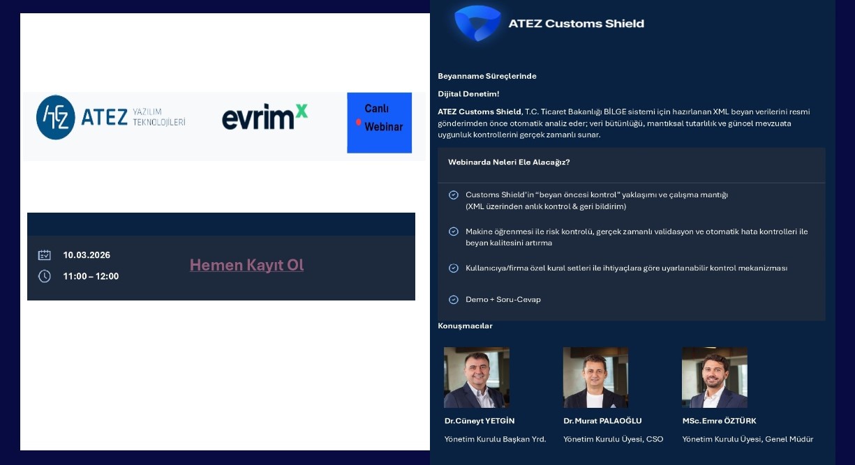 ATEZ Yazılım Teknolojileri'nin "Gümrük Süreçlerinde Beyanname Kontrolüne Yönelik Bilgilendirici Webinar Duyurusu"