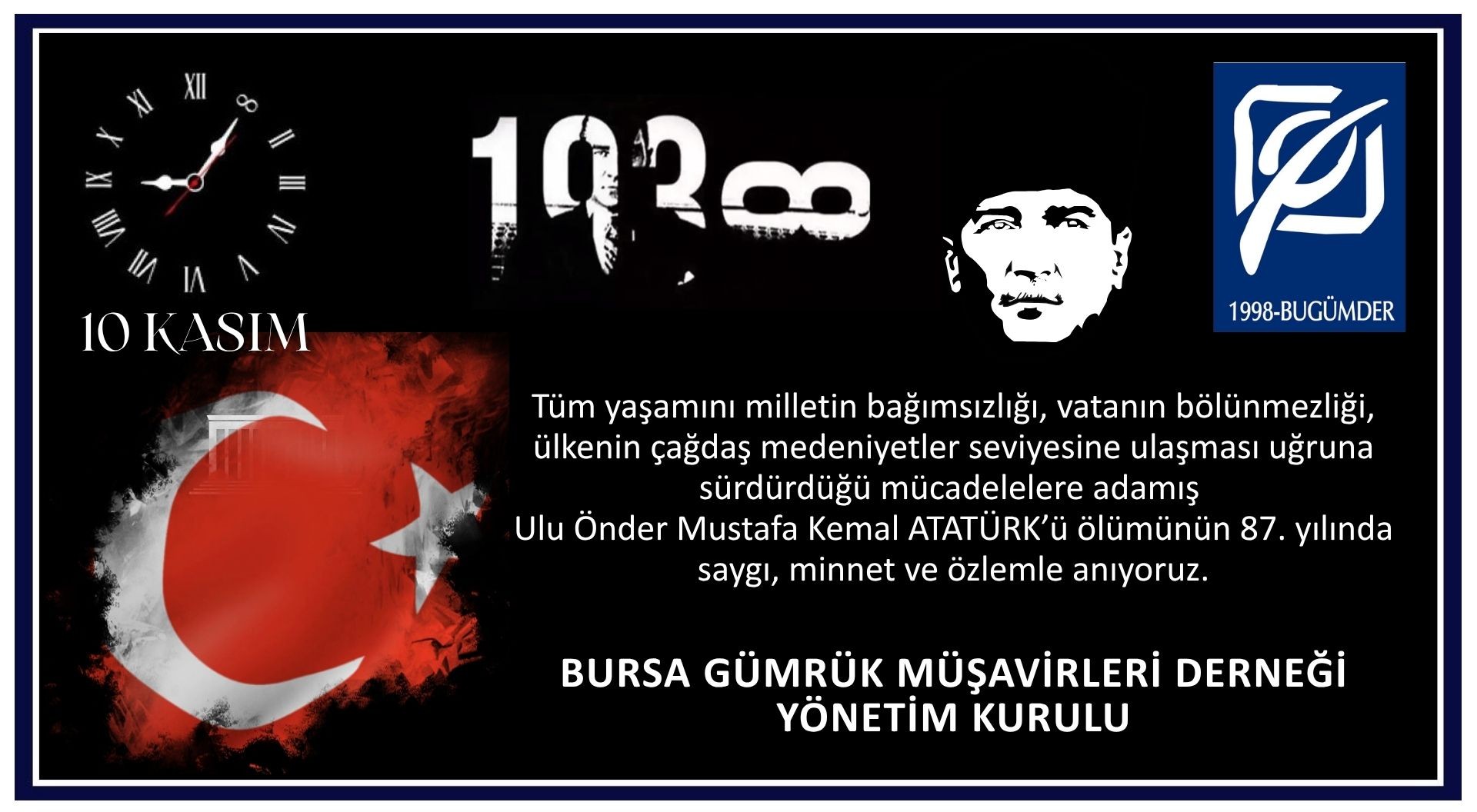 Ulu Önder Mustafa Kemal ATATÜRK'ü ölümünün 87. yılında saygı, minnet ve özlemle anıyoruz...