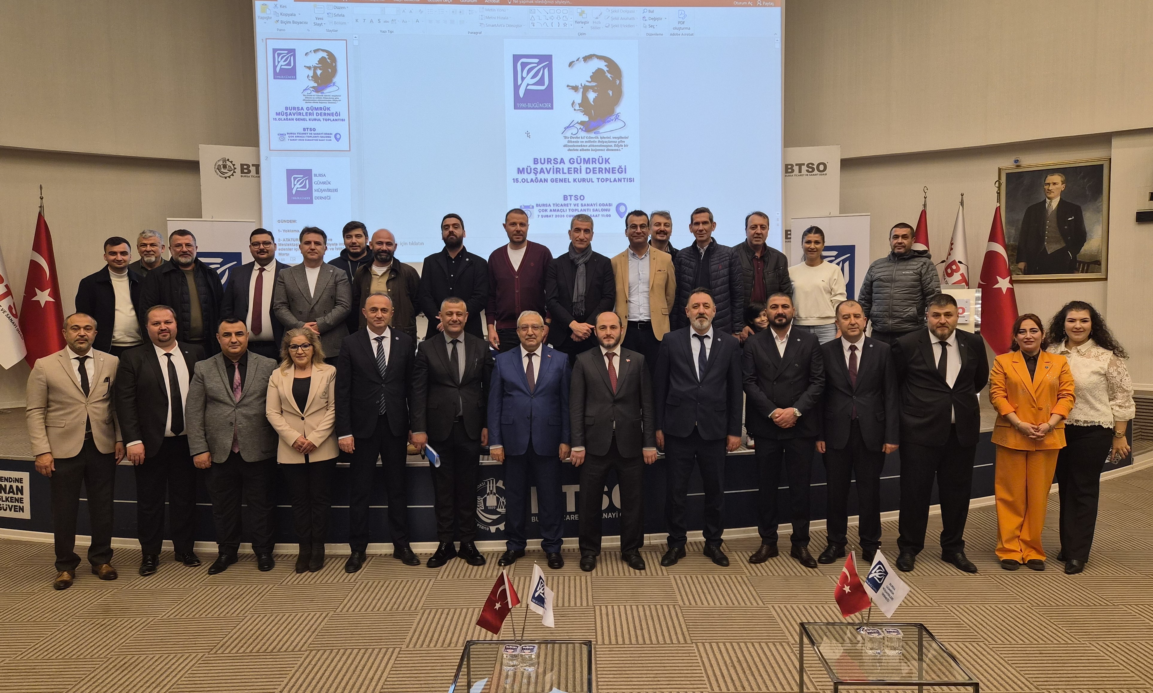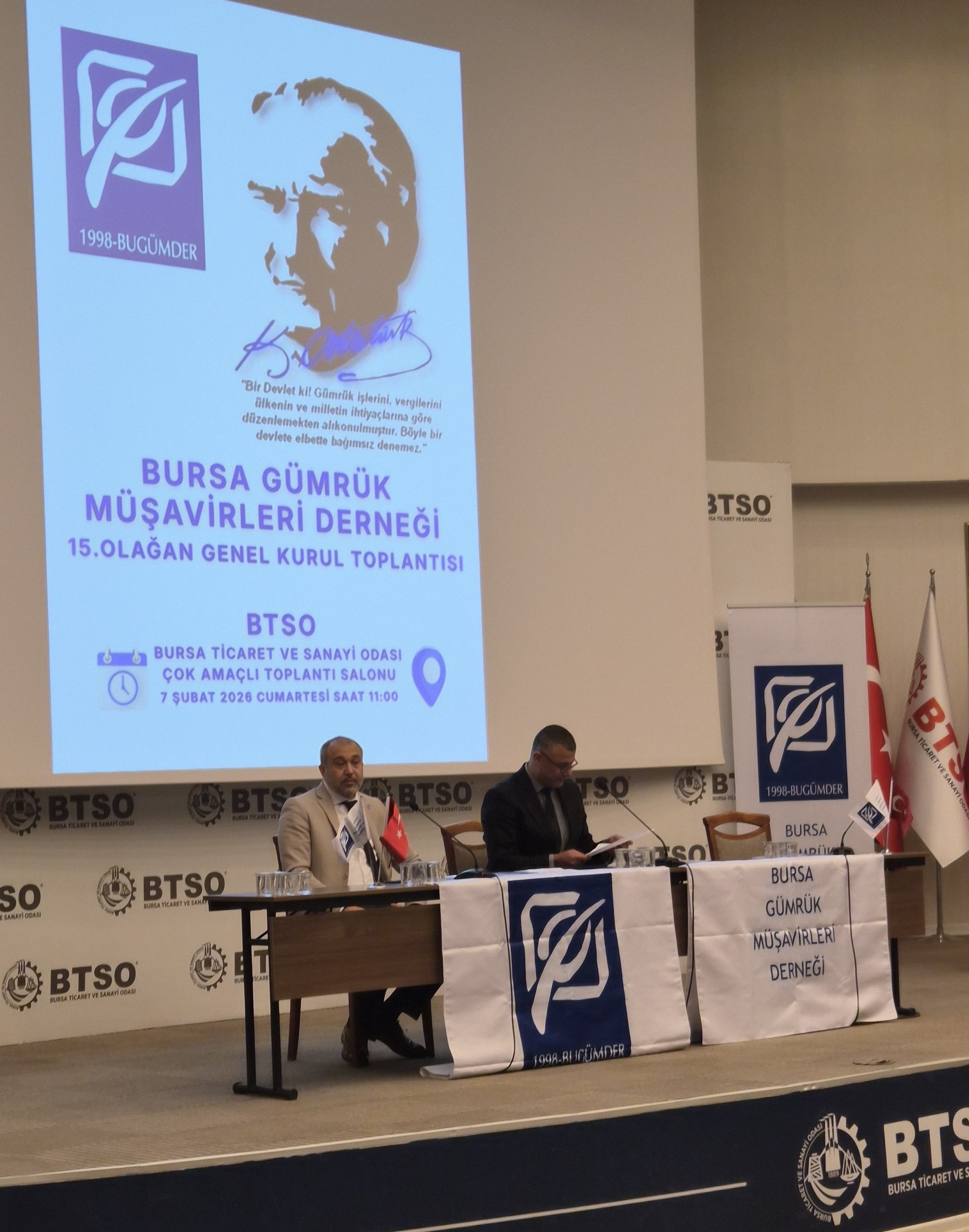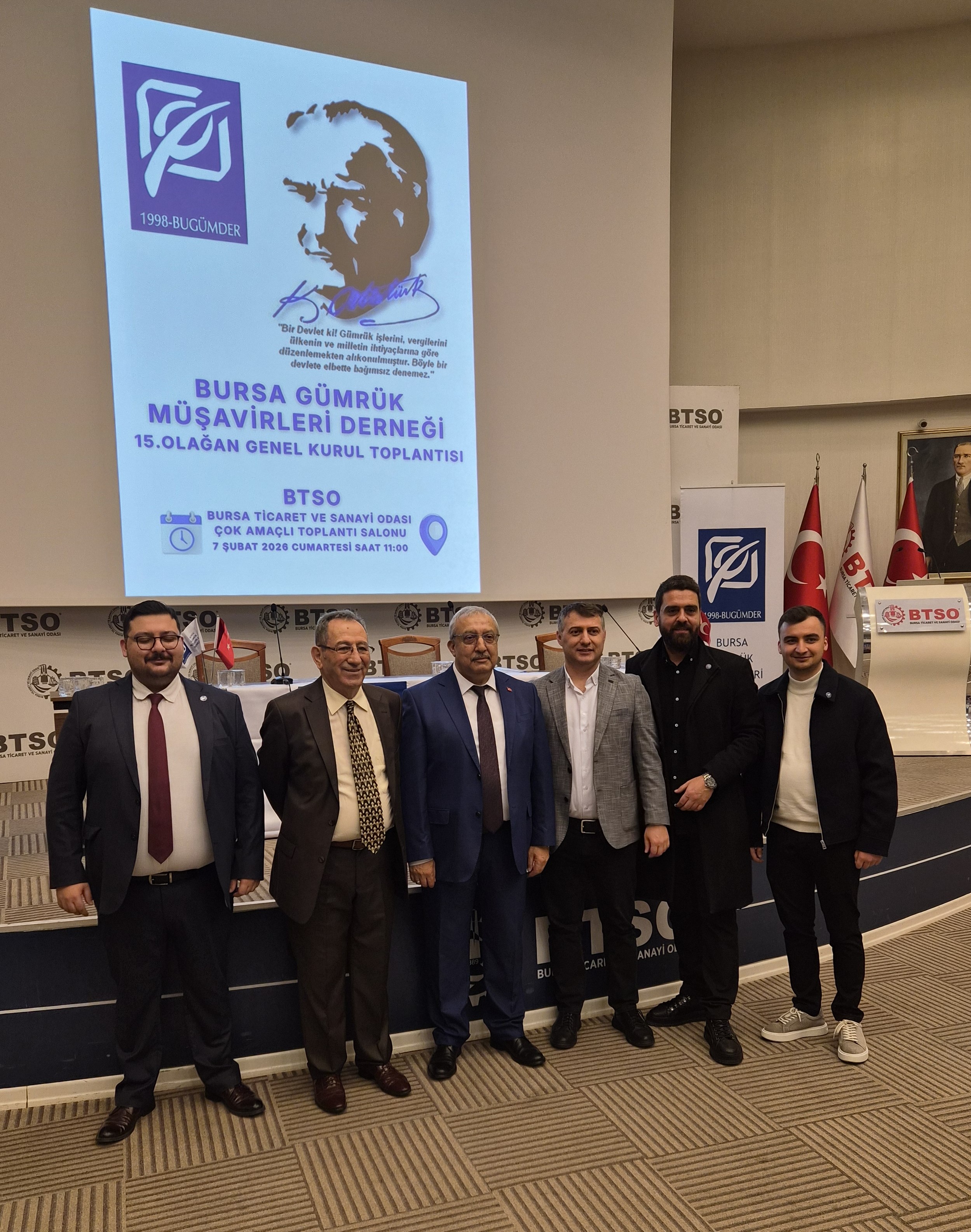 07 Şubat 2026 Cumartesi günü saat 11:00’de BTSO Bursa Ticaret ve Sanayi Odası Çok Amaçlı Toplantı Salonunda gerçekleştirmiş olduğumuz Seçimli 15. Olağan Genel Kurulumuz Bursa Gümrük Müşavirlerine yaraşır bir şekilde sonuçlanmıştır.