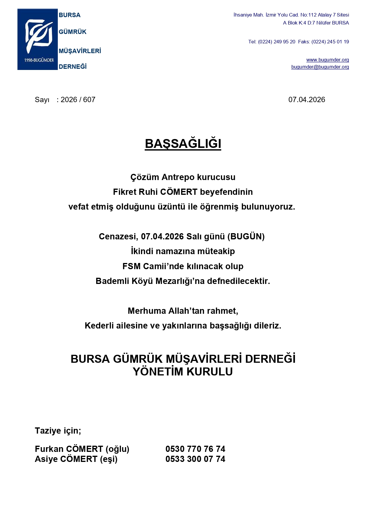 BAŞSAĞLIĞI!... Çözüm Antrepo kurucusu Fikret Ruhi CÖMERT beyefendinin vefatı