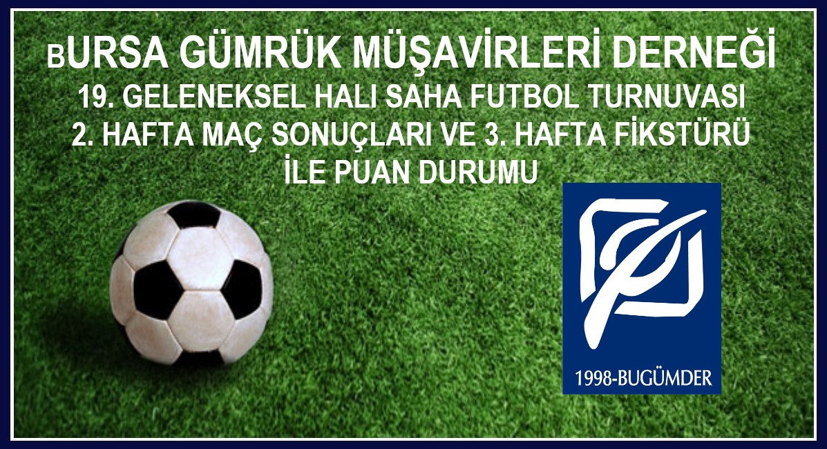 BUGÜMDER 19. Geleneksel Halı Saha Futbol Turnuvamızın 2. Haftasında 18 Nisan 2026 Cumartesi günü oynanan maçların sonuçları ve 3. Hafta oynanacak maçlara ait fikstür ile puan durumu ekte bilgilerinize sunulmuştur.