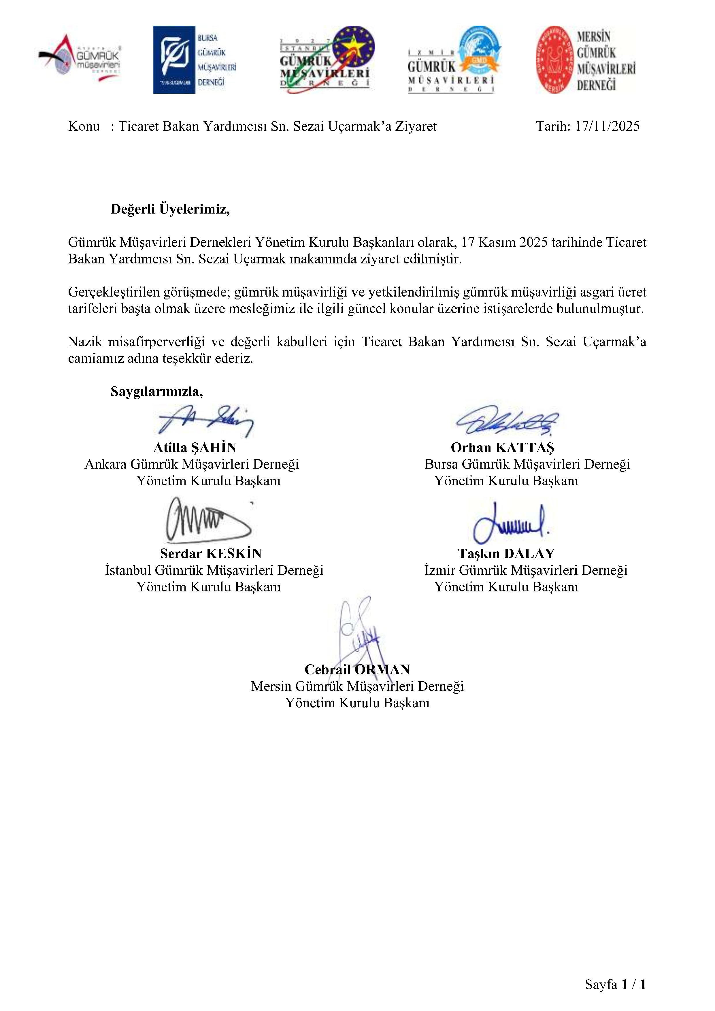 Dernekler ortak duyurusu - Ticaret Bakan Yardımcısı Sayın Sezai UÇARMAK ziyareti