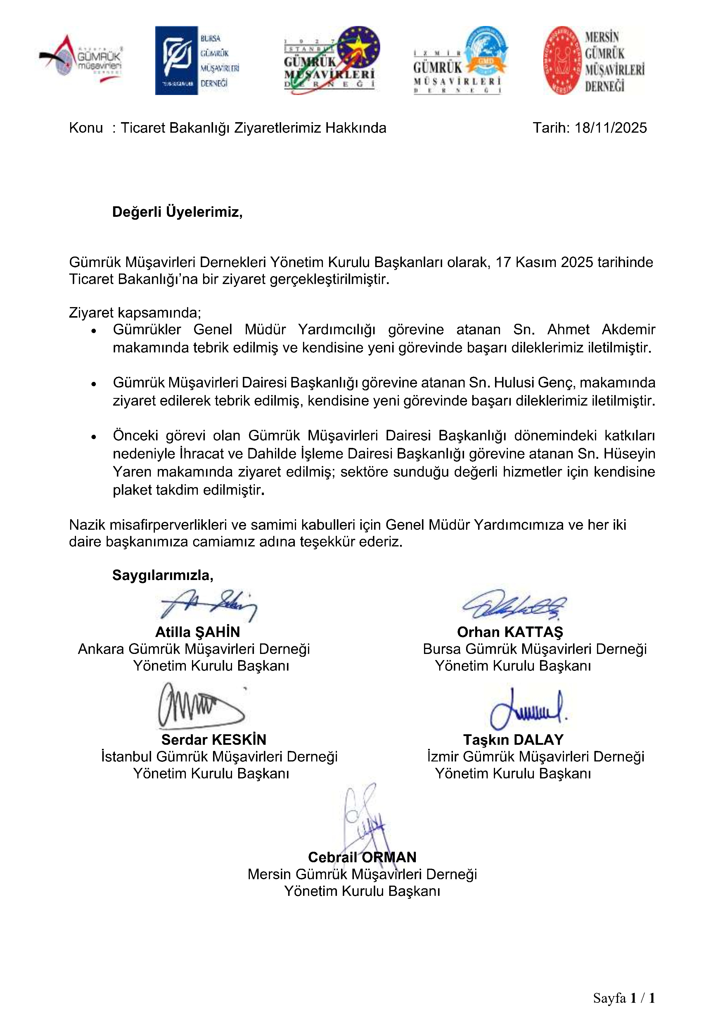 Dernekler ortak duyurusu - Ticaret Bakanlığı Atama Ziyaretleri