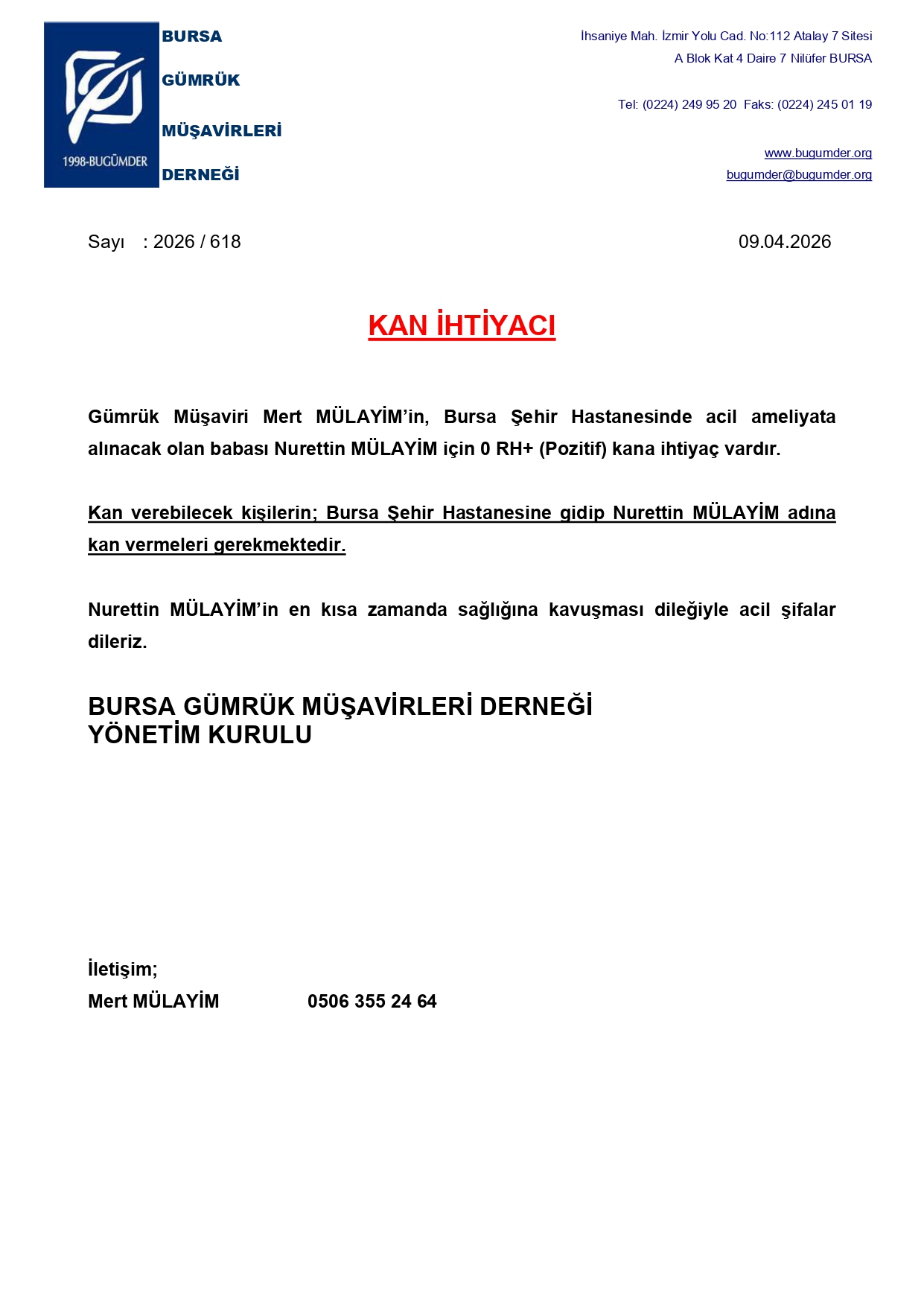 Güm.Müş. Mert MÜLAYİM'in babası Nurettin MÜLAYİM için 0 RH + kan ihtiyacı