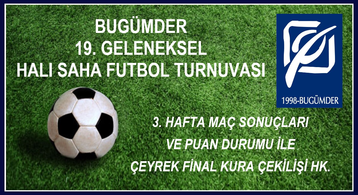 BUGÜMDER 19. GELENEKSEL HALI SAHA FUTBOL TURNUVASI 2. HAFTA MAÇ SONUÇLARI VE 3. HAFTA FİKSTÜRÜ İLE PUAN DURUMU...