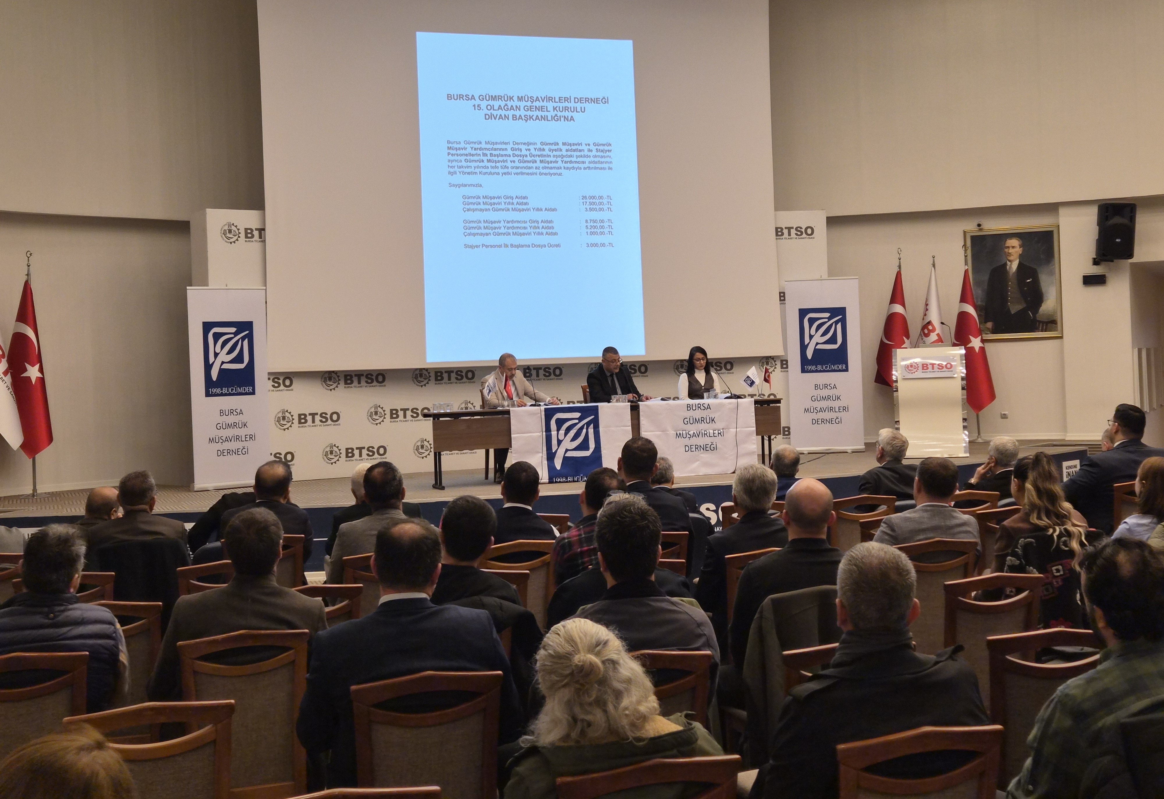 07 Şubat 2026 Cumartesi günü saat 11:00’de BTSO Bursa Ticaret ve Sanayi Odası Çok Amaçlı Toplantı Salonunda gerçekleştirmiş olduğumuz Seçimli 15. Olağan Genel Kurulumuz Bursa Gümrük Müşavirlerine yaraşır bir şekilde sonuçlanmıştır.