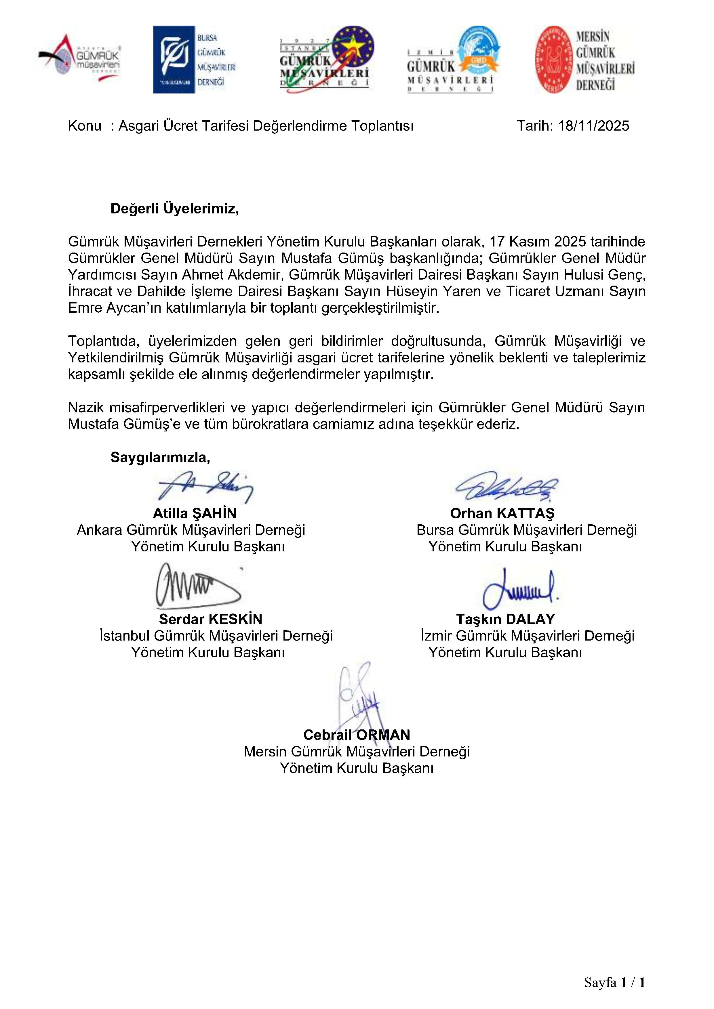 Dernekler ortak duyurusu - Asgari Ücret Tarifesi Değerlendirme Toplantısı